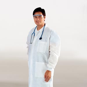 Lab Coat, Medium, One Breast Pocket, Two Lower Pockets, Knit Cuff, Snaps, Collar Hang Loops, Limited Use, White, 25/cs
