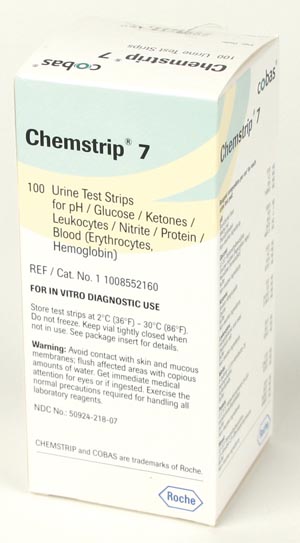 Chemstrip 7 (Leukocytes, pH, Protein, Glucose, Nitrite, Ketone, Blood), CLIA Waived, 100/vial (Minimum Expiry Lead is 90 days)