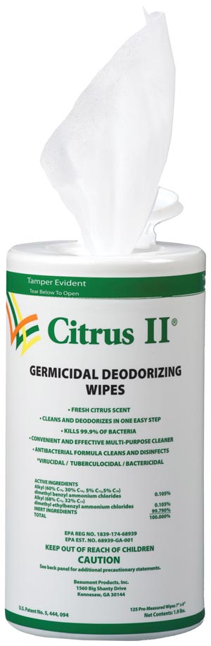 BEAUMONT CITRUS II GERMICIDAL CLEANING WIPES(cs)