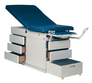Exam Table, 54″-72″L x 29″W x 33″H, (2) Front End Drawers, (3) Right Side Drawers, Gray Beige Finish