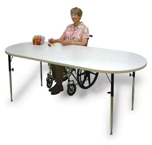 Oval Extension Table, Sail White High-Pressure Laminate, 60″-84″L x 36″W x 26″-34″H