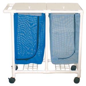 Space Saving Double Hamper, Mesh Bags (33 Gal Capacity, Plastic Bag) 3″ Twin Nylon Casters, Zipper Opening