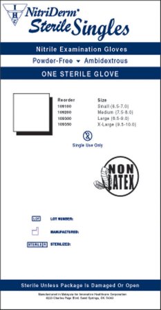 Gloves, Exam, Small, Nitirle, Sterile, PF, Singles, 9″ Cuff, 100/bx, 4 bx/cs