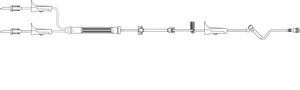 Y-Type Blood Set, Two Non-Vented Spikes, Three Roller Clamps, 170 Micron Blood Filter, Free Flow Protection Clamp, SAFELINE Injection Site, SPIN LOCK Connector, Latex Free (LF), 39mL Priming Volume, 120″L, 24/cs