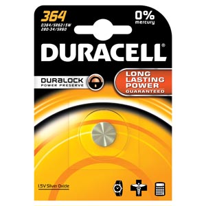 Battery, Silver Oxide, Size 364, 1.5V, 6/bx, 6 bx/cs (UPC# 66272)