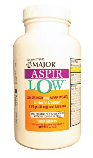 Aspir-Low, Enteric Coated, 81mg, 1000s, Compare to Bayer® Low Dose, NDC# 00904-7704-80 **Temporarily Unavailable for Sale**