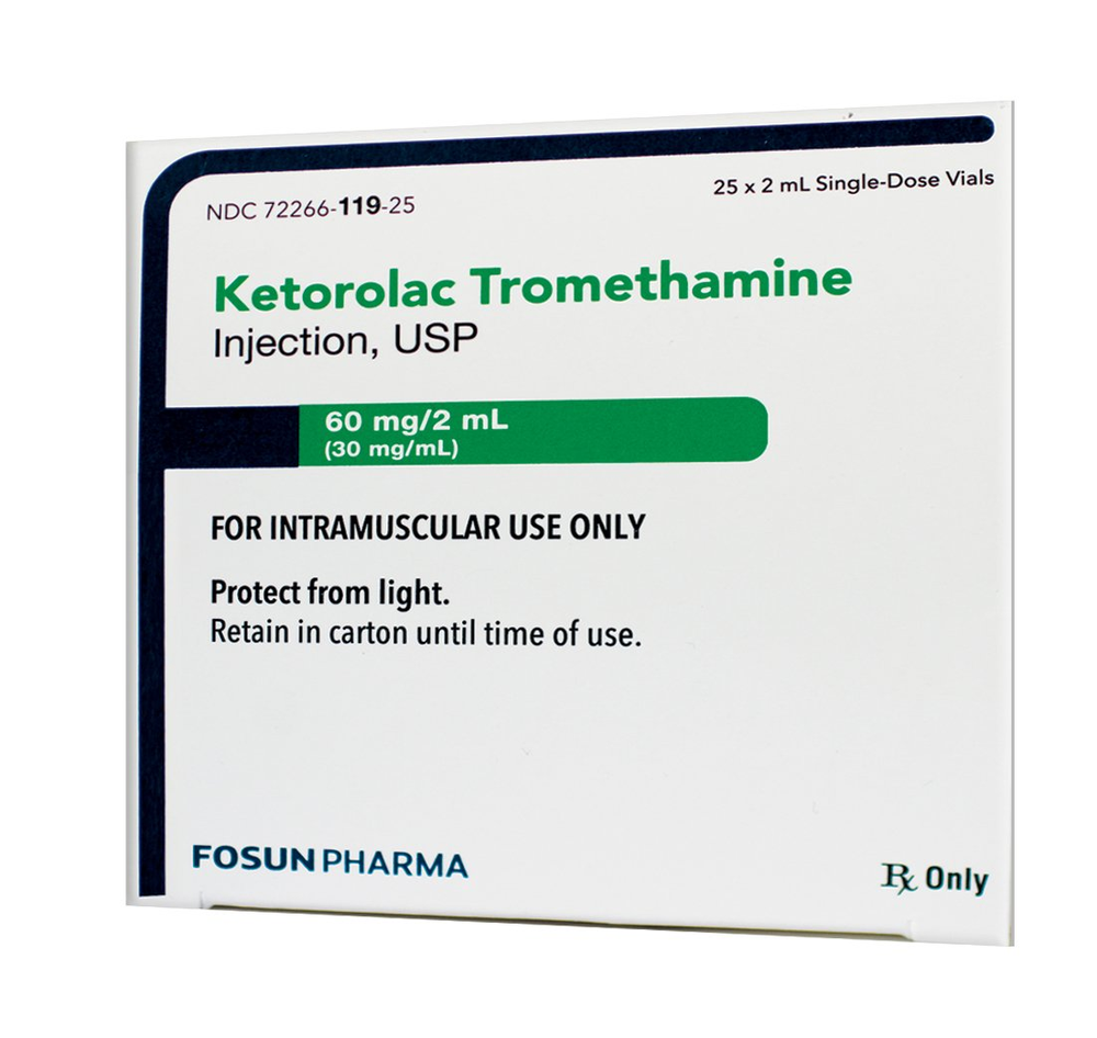 Ketorolac Tromethamine (Product #72266011925) by Fosun Pharma USA is a high-strength, non-opioid analgesic indicated for the short-term (up to 5 days) management of moderately severe acute pain. This 60 mg/2 mL formulation is specifically designed for Intramuscular (IM) administration only. As a potent nonsteroidal anti-inflammatory drug (NSAID), it provides significant pain relief without the sedative effects or respiratory depression associated with narcotics.