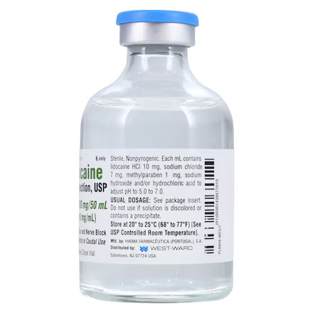 Lidocaine Hydrochloride Injection (Product #00143957710) by Hikma Pharmaceuticals is a sterile, nonpyrogenic, aqueous solution used for the production of local or regional anesthesia. As a local anesthetic of the amide type, it works by stabilizing the neuronal membrane and inhibiting ionic fluxes required for the initiation and conduction of impulses. This Multiple-Dose Vial contains methylparaben as an antimicrobial preservative, allowing for repeated use in clinical settings such as minor surgical procedures, dental work, and peripheral nerve blocks. It is a staple anesthetic listed in both McKesson and Henry Schein catalogs.