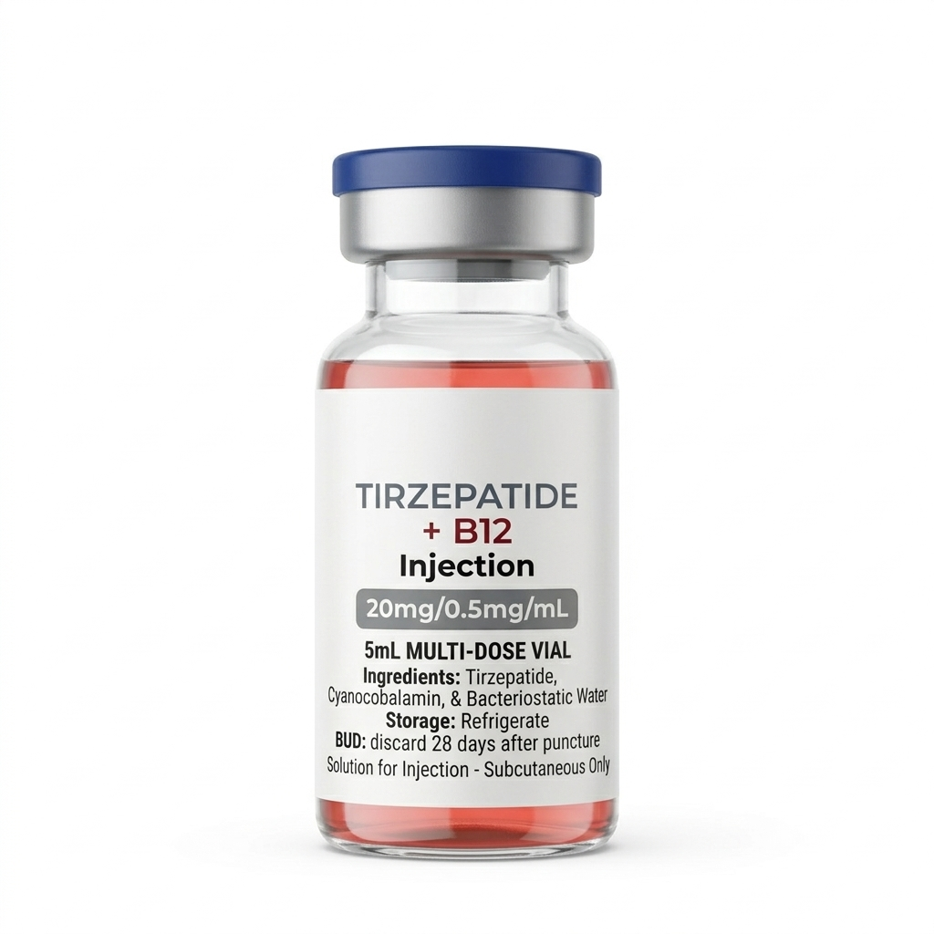 Active Ingredients: Tirzepatide (20mg/mL), Cyanocobalamin (0.5mg/mL).