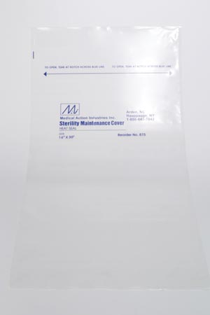 Cover, 16″ x 30″, Print/ Label Tear & Seal Instructions, 2.25 Mil, Clear/ Blue, LLDPE Film, Flat Pack, Heat-Seal Adhesive Strip, 250/cs